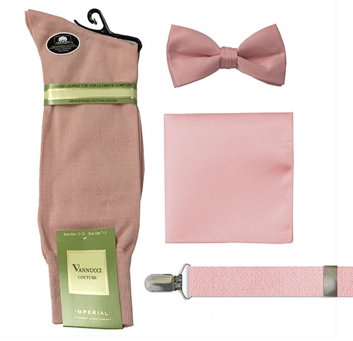 TAKE ADVANTAGE OF OUR SPECIAL MATCHED SOCK, BOW TIE, HANKIE AND SUSPENDER SETS AND SHOW YOUR STYLE! DEPENDING ON COLOR, EACH SET COMES WITH CHOICE OF A) SUSPENDERS PURCHASE ANY TWO ITEMS FOR $20.00 GREAT ON-STAGE FOR CONCERTS AS WELL AS GIFTS AND FUNDRAISERS